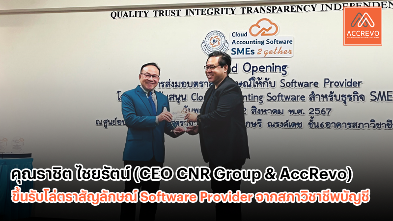 🎊🏆คุณราชิต ไชยรัตน์ (CEO CNR Group & AccRevo) ขึ้นรับโล่ตราสัญลักษณ์ Software Provider จากสภาวิชาชีพบัญชีฯ